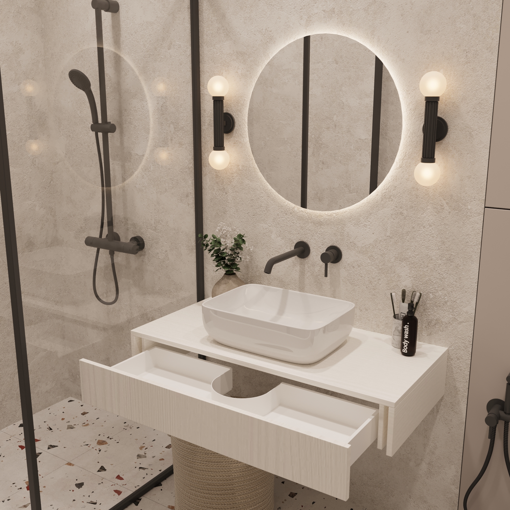 Поставка — в разобранном виде, раковина не входит в комплект.