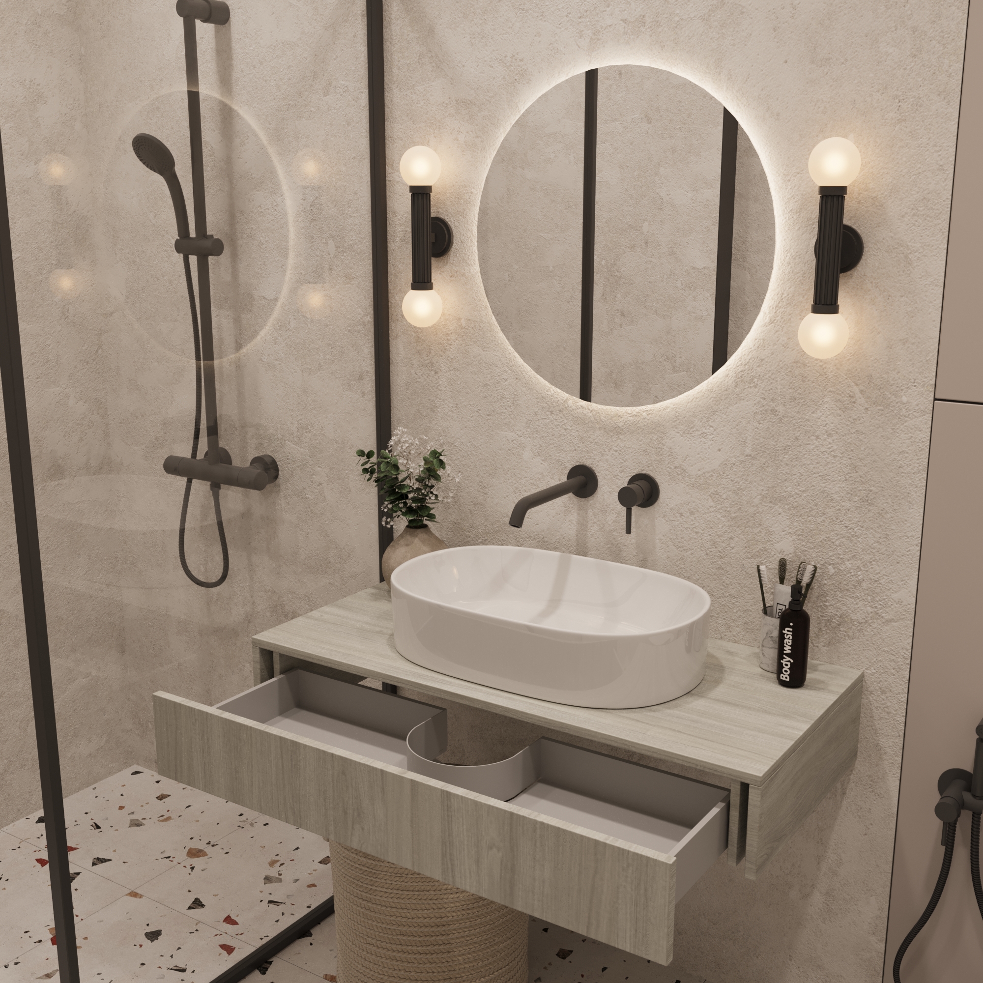 Добавьте элегантность и функциональность в ваш интерьер с подвесной тумбой Токио. Этот стильный элемент сочетает современные материалы с изысканным дизайном, что делает его идеальным решением для ванной комнаты.