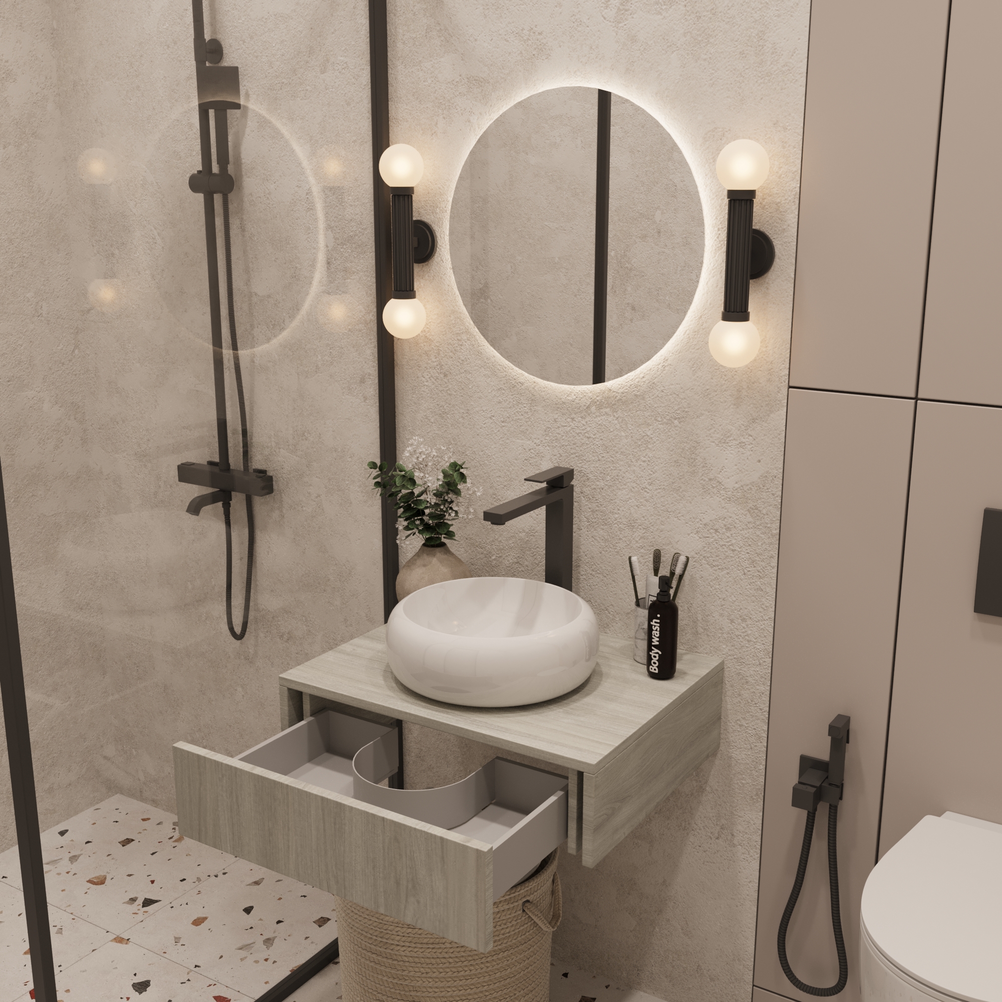 Добавьте элегантность и функциональность в ваш интерьер с подвесной тумбой Токио. Этот стильный элемент сочетает современные материалы с изысканным дизайном, что делает его идеальным решением для ванной комнаты.
