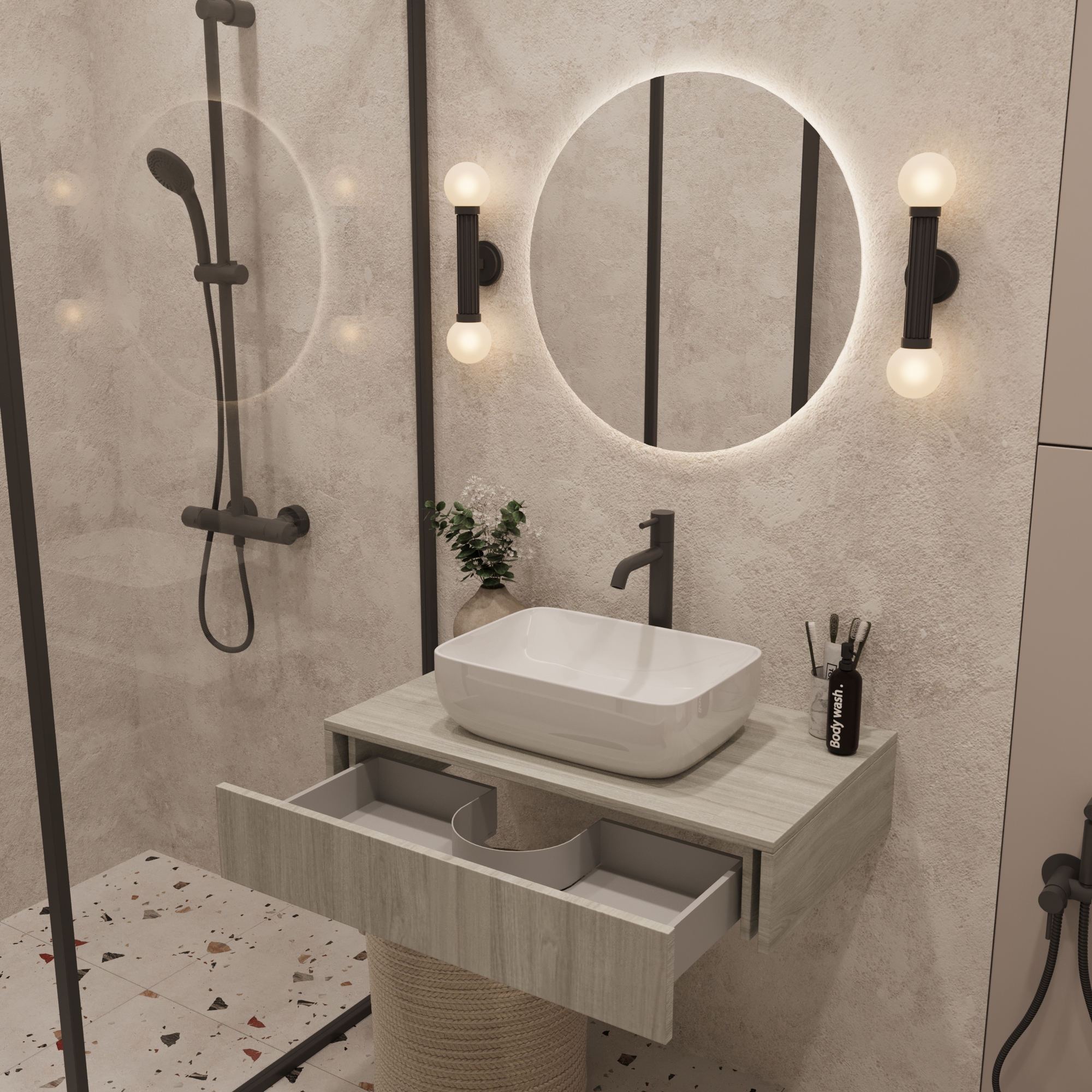 Добавьте элегантность и функциональность в ваш интерьер с подвесной тумбой Токио. Этот стильный элемент сочетает современные материалы с изысканным дизайном, что делает его идеальным решением для ванной комнаты.